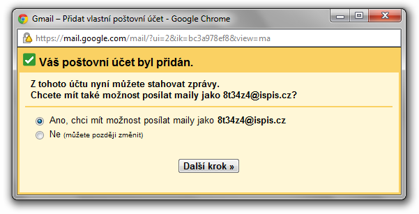 3. Jako e-mailovou adresu zadejte <ID-vaší-datové-schránky>@ispis.cz